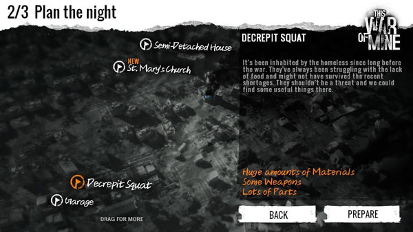 超市(Supermarket):醉汉士兵正拽着女孩衣领,货架间堆满过期罐头。地下室双锁背后藏着整箱烈酒与抗生素,土堆下埋着半袋大米。若选择旁观,次日藏身处将响起压抑的啜泣。