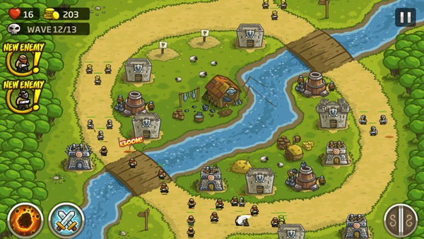 皇家守卫军手机版是一款经典塔防手游,玩家需部署兵营、箭塔、法师塔与炮塔四大类型防御设施,每种塔均设有五阶升级路径,满级后还能解锁专属强化技能,显著提升战斗效能。