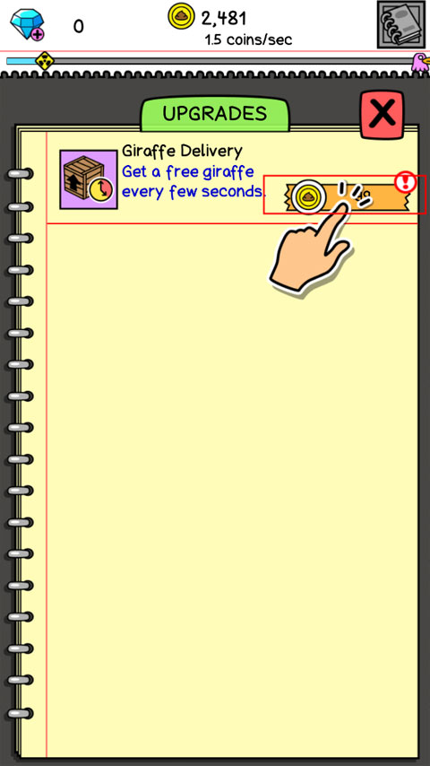 屏幕右下方双层树图标代表宝箱商店,购入后立即开启,常藏惊喜长颈鹿