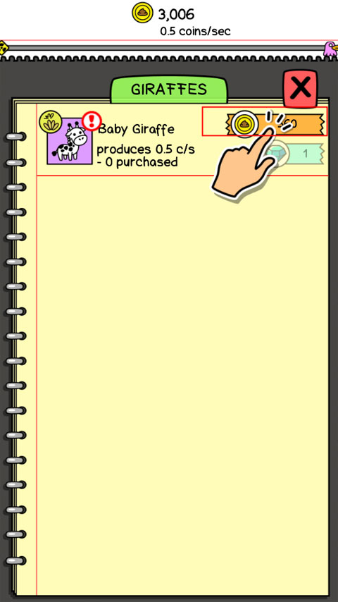 左下角长颈鹿图标是你的宠物召唤台,花费金币可引入新成员加入画面