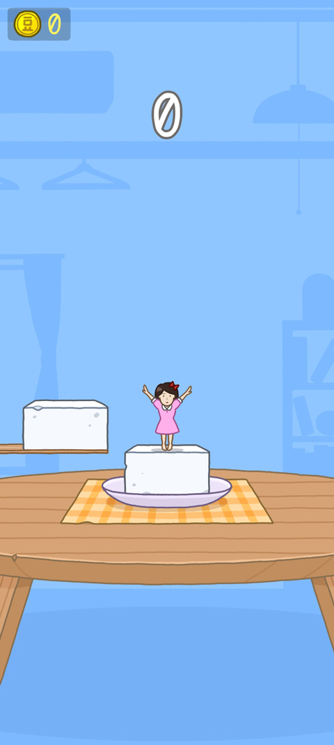 进入经典模式后,画面中央的女孩静待指令。豆腐自侧方缓缓探出,此时轻触屏幕,她便跃向目标,稳稳站定——堆叠由此开始,高度由此累积。