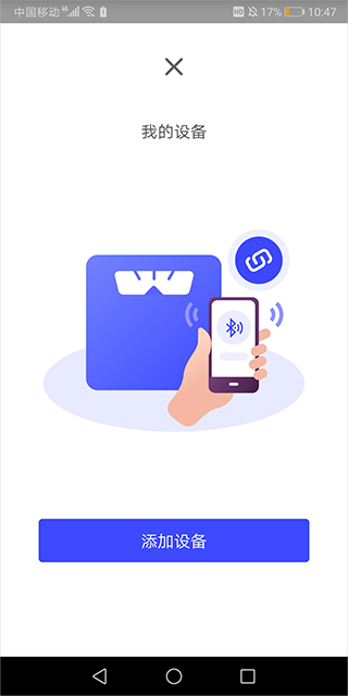 打开应用后,主界面中央醒目位置设有体重秤图标,点击即可进入设备管理区域。
