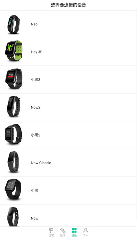 打开唯乐手环app,在设备管理页找到对应型号,轻触进入配对流程。