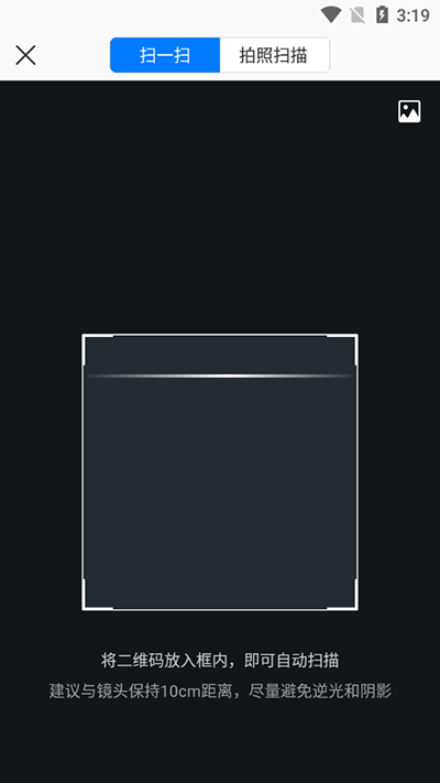扫描图标支持二维码识别与纸质文档高清拍摄,自动裁边、增强文字清晰度。