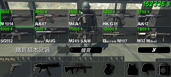 战前准备界面开放完整军需清单:突击步枪、霰弹枪、反器材狙击枪任选其一;防弹插板、战术头盔、急救包、燃烧瓶等物资按需搭配,初始资金充裕,鼓励大胆尝试组合。