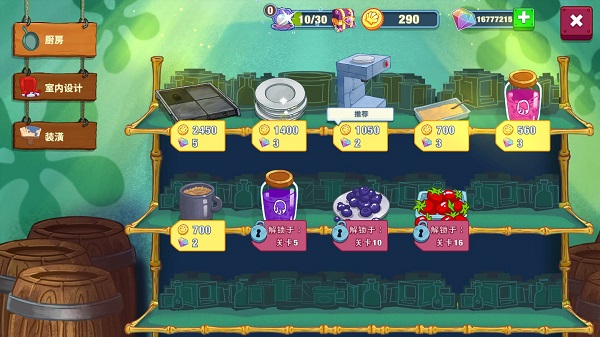 从门帘花纹到厨师帽样式,从柜台材质到背景音乐风格,上百种视觉与听觉元素自由混搭,打造真正只属于你的海底餐饮宇宙。