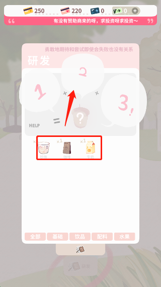 将已获得的原料拖入研发栏,尝试不同组合,成功调制后自动录入图鉴,并触发顾客口碑传播。