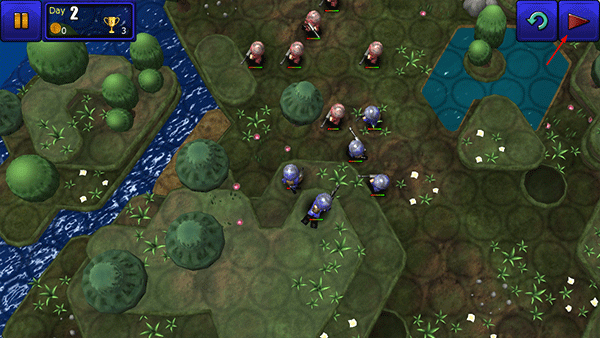 本方回合结束后点击右上方按钮移交行动权,静观敌军动向,为下一回合决策积累信息。