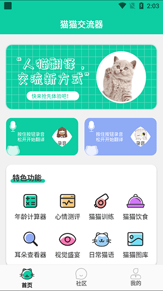 猫猫交流器是一款专为猫奴打造的趣味互动工具,融合声音模拟、行为解读与情绪分析功能,让主人更懂喵星人的小脾气。内置的猫咪知识库涵盖日常护理、健康预警、习性解析等内容,从挑食原因到应激反应,都有通俗易懂的说明。