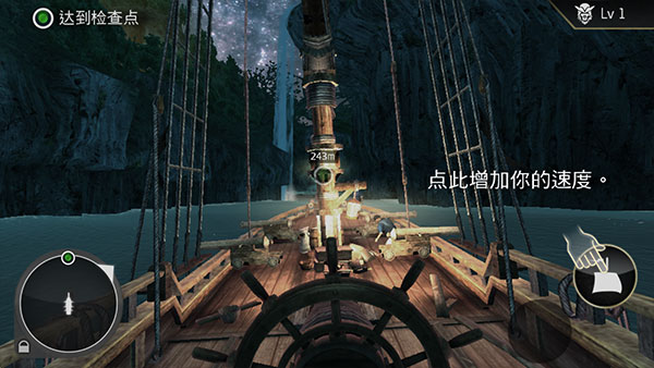 右下角白色加速图标不是摆设。长按它,船尾喷涌白浪,但注意燃油槽正在飞速下降。