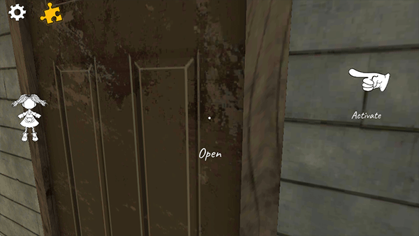 操控角色靠近主屋木门,门把手转动时镜头微微震颤,暗示即将发生的变故