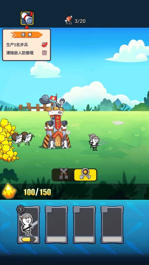 画风走的是夸张卡通路线,但细节毫不敷衍——弓箭手拉弓时眉毛抽动,炮兵开火前先甩个狗头表情,连防御塔升级都配上了“啊这”式语音彩蛋。