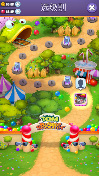 游戏中玩家需要控制汤姆猫发射彩色泡泡,通过精准的瞄准让相同颜色的泡泡碰撞并消除。每个关卡都设计了独特的布局和挑战,考验玩家的策略与反应能力。