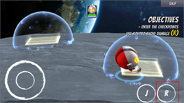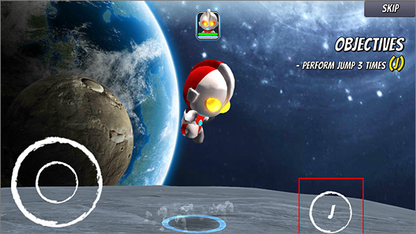进入游戏后,系统引导会自然融入场景——轻触左侧区域即可驱动奥特曼迈步前行,角色自动吸附至可交互黄圈范围,移动过程伴随地面粒子拖尾效果。