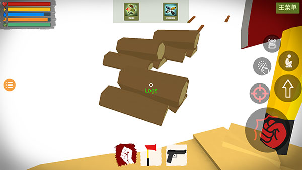 对准木箱、油桶、草丛等可交互对象,点击右侧手指图标即可采集,动作反馈清晰,无延迟卡顿。