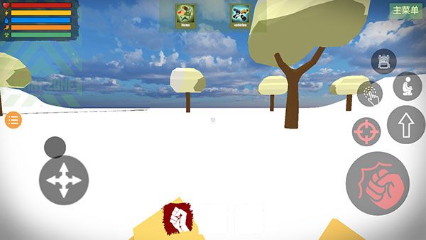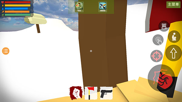 右上角【背包】图标是你的生存中枢,整合了物品管理、合成配方与建筑蓝图三大功能模块。