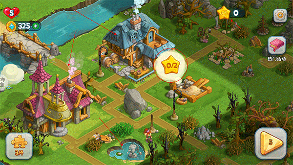核心驱动力源于地图探索与空间营造。每一颗星星都是通往新区域的钥匙,闯关成功即点亮对应建筑图标,从简朴木屋到恢弘圣殿,层层递进,构建属于你的幻想领地。