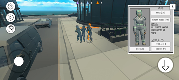 部署完成后,点击左上角暂停按钮,选择“玩”模式,即可接管该单位进行实时操作。摇杆控制移动,屏幕右侧虚拟按键负责射击、装填、切换武器等动作。