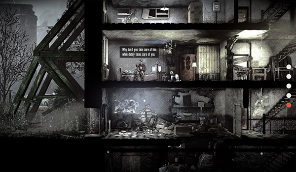 这是我的战争游戏手机版是一款紧张写实的2D横版生存冒险作品,由经典PC版本精心移植优化而来。画面延续了标志性的灰调美学,仅用黑、白、灰三色勾勒出末日废土的真实质感,断壁残垣散落街角,空荡巷道弥漫着萧瑟气息。