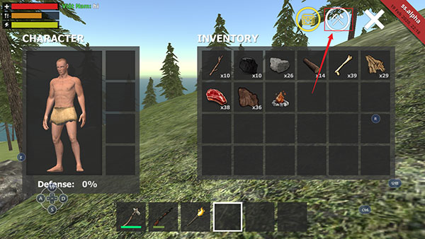 切换至制作面板,找到双斧图标的CRAFTING选项。