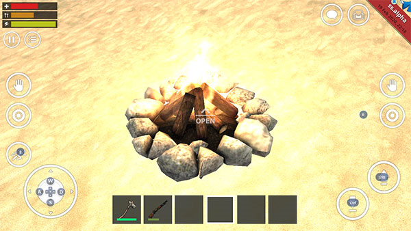 靠近营火时,界面浮出OPEN字样,轻触即可激活使用功能。