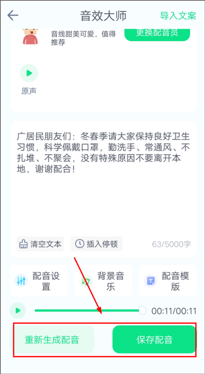 生成配音后即时试听,满意则直接保存至手机媒体库,不满意可随时调整参数重新合成。