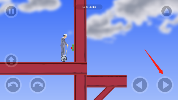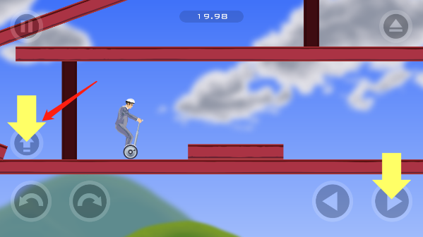 五枚按钮覆盖全部动作:左下三键掌控平衡与腾跃,右下两键驱动进退。看似自由,实则处处受限——倾斜角度稍大即侧翻,起跳时机差半拍便坠崖。