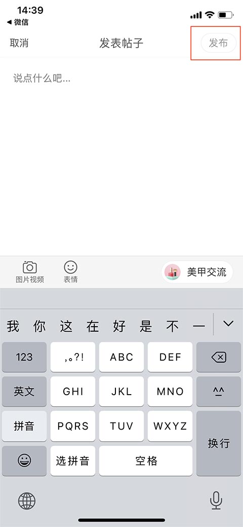 进入页面后,轻触屏幕中央的“+”按钮,在弹出菜单中选择“发帖子”,即可进入招聘信息发布页。