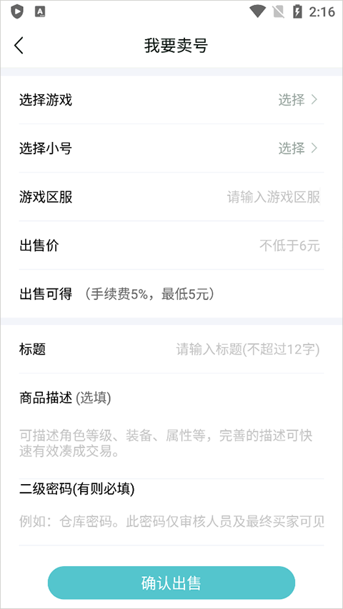 出售账号前请先在交易页面点击“发布售号”,确认绑定信息无误后进入下一步。