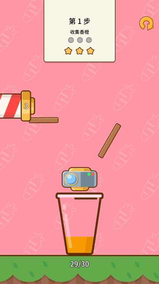 首单是杯清爽果茶,屏幕右上方浮现订单要求,指尖轻划引导香橙片稳稳落入玻璃杯中。