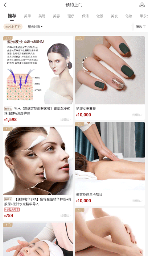 美甲之外,还拓展至汽车空气净化等生活场景,新用户注册即送50元无门槛美甲券,99元即可预约HEPA滤网安装服务。