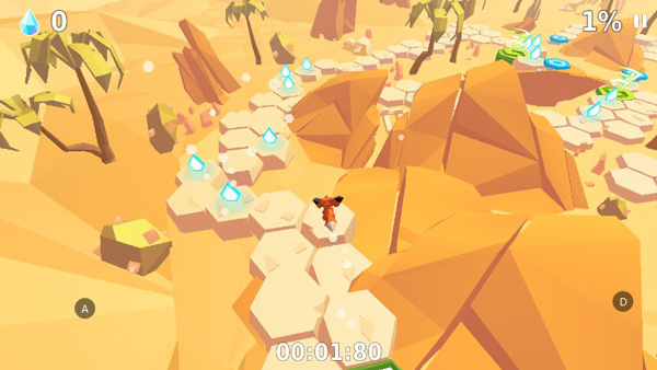 操作极简却富有延展性:轻触屏幕左侧,小狐狸向左偏转六十度;右侧轻点,则向右偏转相同角度。连续六次同侧点击,便能完成一次完整回旋。这种基于六边形路径的转向机制,让规避障碍、抄近道、甚至故意绕行收集散落光点,都成为可自由调度的节奏选择。途中偶尔响起的清脆狐鸣,是系统对流畅操作最温柔的回应。