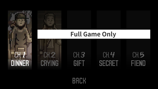 点击“start”进入游戏主界面,选择当前可玩章节——从第一章《晚餐》开始你的雾中夜巡。