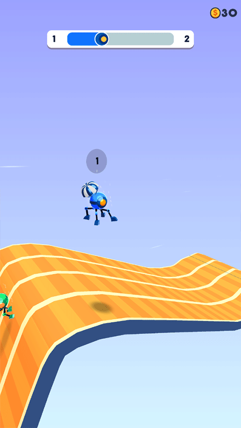 持续按住屏幕,机器人背部会展开微型降落伞,身体随之上浮,短暂脱离地面束缚。合理运用升空时机,可越过断桥、避开地刺,甚至借气流调整落点。