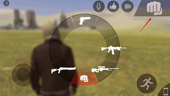 右上角拳头图标用于快速切换当前持有武器。