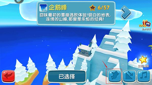 屏幕顶部实时显示奖励能量条,收集金币、完成特技、躲避障碍均可充能,满格后召唤火箭船、磁吸装置、超级加速器等强力工具,甚至能载着企鹅或雪怪一同冲向天际。