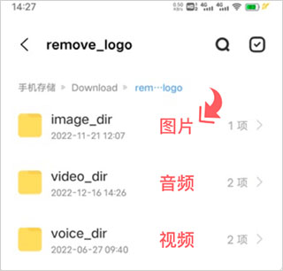 点击进入“remove_logo”文件夹,所有已处理完成的图片和视频均按时间顺序排列存放。