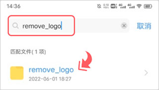 打开手机自带文件管理器,在搜索栏输入“remove_logo”,系统会定位到该文件夹。