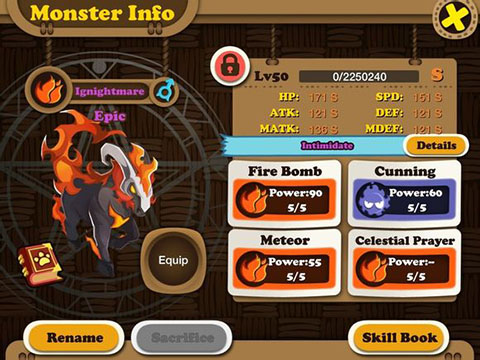 精灵可通过融合系统进行升阶,相同类型精灵可合成更高阶个体并继承部分技能