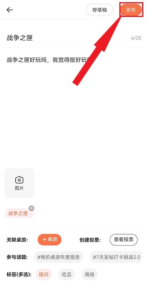 左下角“关联桌游”可绑定具体产品,让讨论内容与实物精准挂钩。