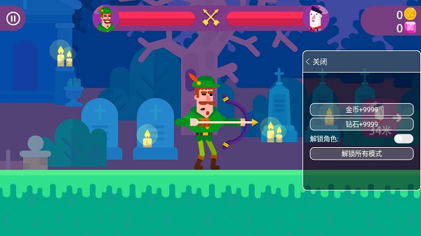冷血射手是一款融合物理弹道与趣味竞技的2.5D射击游戏。画面明快细腻,角色设计诙谐生动,玩法上延续了经典抛物线瞄准逻辑,玩家需自主调节发射角度与蓄力强度,让箭矢、飞刀或香蕉皮精准命中目标。
