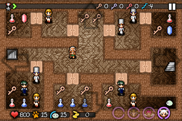采用传统魔塔式网格移动,上下左右键控制角色在方格间行进