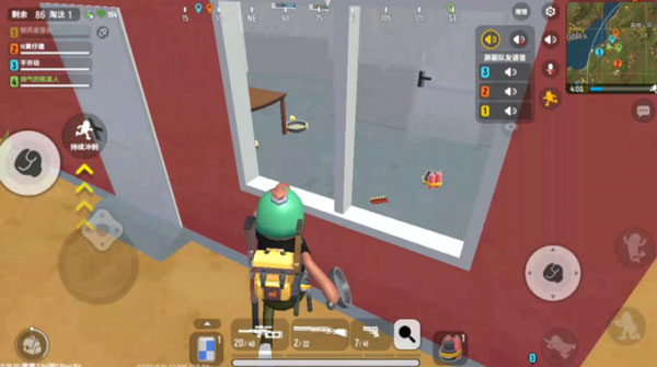 操作界面布局直观,红圈区域支持自由切换视角,便于静止时观察侧后方敌情;绿圈为开镜按键,提升瞄准精度的同时小幅降低移动速度;蓝圈打开背包,可整理、丢弃或使用已拾取物品;黄框区域集中呈现武器切换、药品使用及投掷物释放功能,响应迅速,便于实战中快速决策。