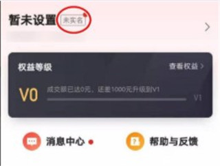 进入个人中心后,若尚未完成实名认证,点击“未实名”或右上角箭头图标继续操作。