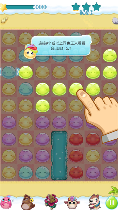三颗同色玉米是最小消除单位,规则简单易懂,但组合变化无穷,耐玩性强。