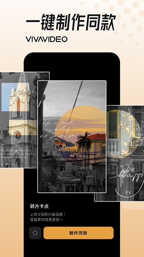 从相册导入素材后自动识别横竖屏,提供智能构图建议