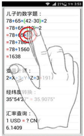 长按“=”号键,即可完整查看当前算式的计算过程,方便家长和教师核对作业。