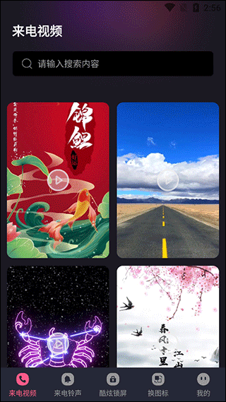 打开酷乐队app,从视频库中挑选一个喜欢的来电秀素材;
