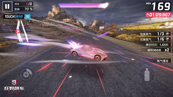 利用空中翻转与特技动作积攒氮气,可在直道前快速补满加速资源。