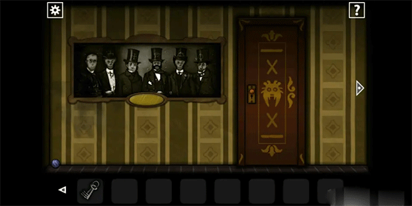 搭乘电梯抵达一层,先向左进入第一个房间,在左下角拾取「蓝色弹珠」。同时注意墙上画像,观察帽子上所刻的特殊符号。